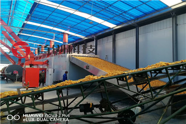 烘干阶段:主体部分承担着陈皮烘干的重要工作过程,陈皮在这一阶段进行脱水,主要工作阶段也是在此地方发生,陈皮在翻转中接触热风进而达到失水,并通过排湿系统将水分排出烘室。