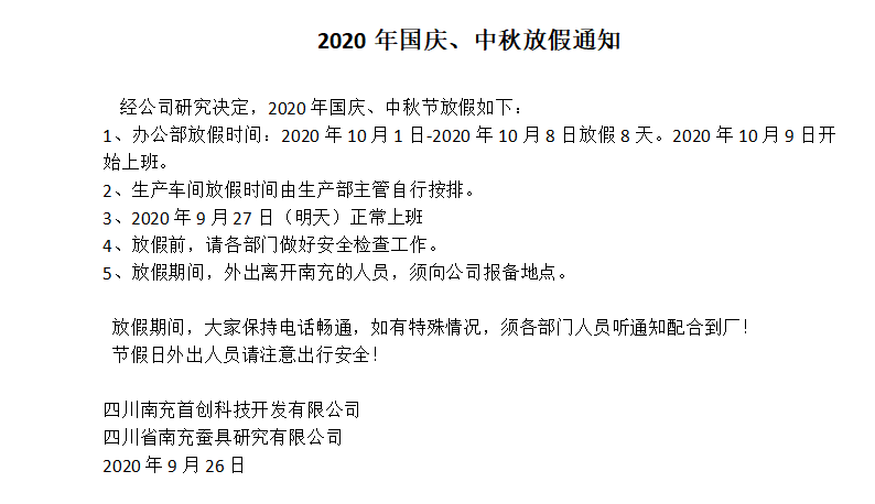 2020年南充首创放假通知