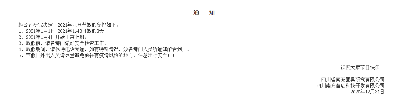 2021年元旦节放假通知